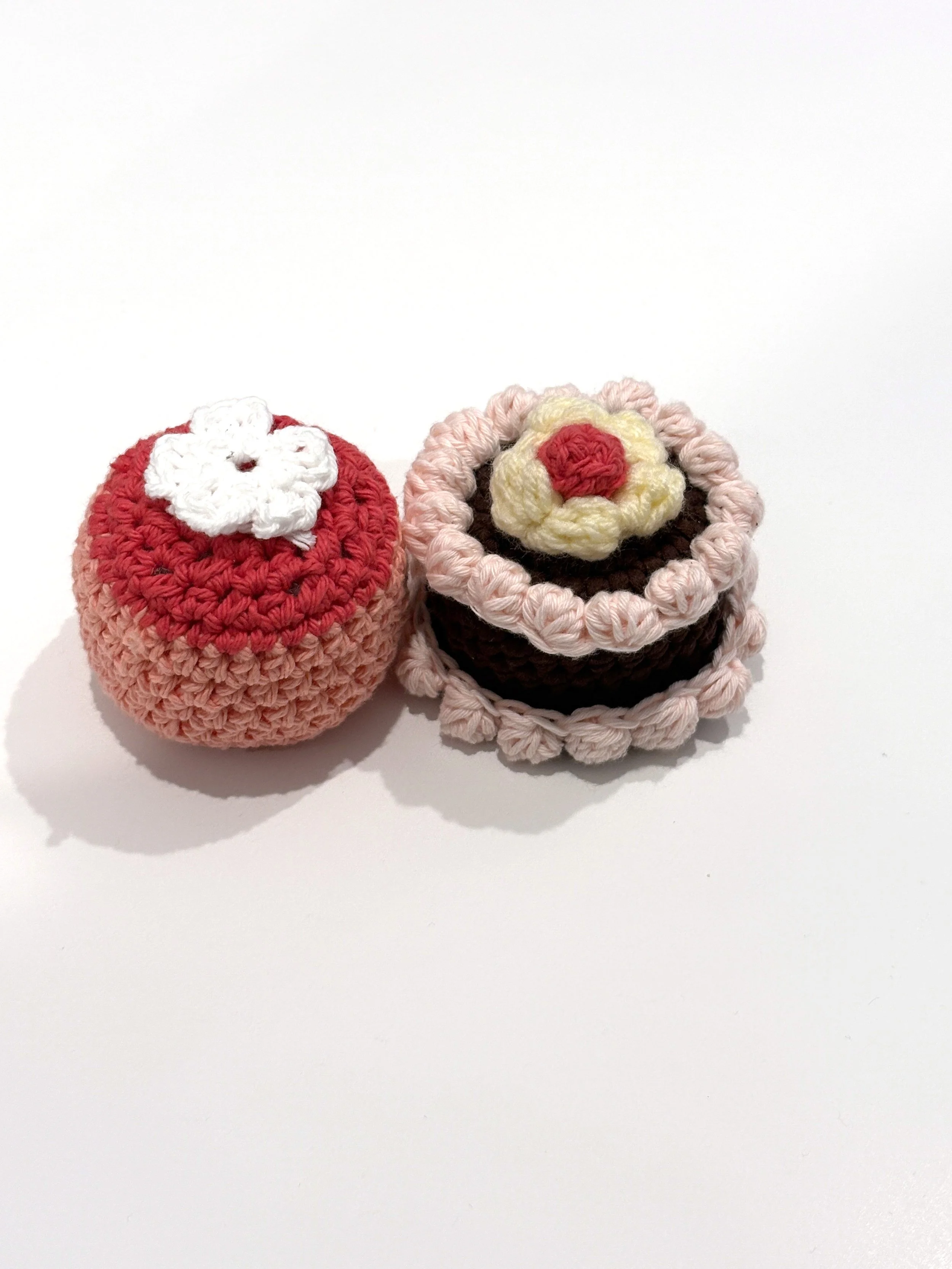 For this project, I wanted to challenge myself to make soft toys for toddlers aged 4-8 years old to develop their fine motor skills without the use of plastic and harder materials like wood while still utilizing bright colors and tactile appeals of desserts and foods.